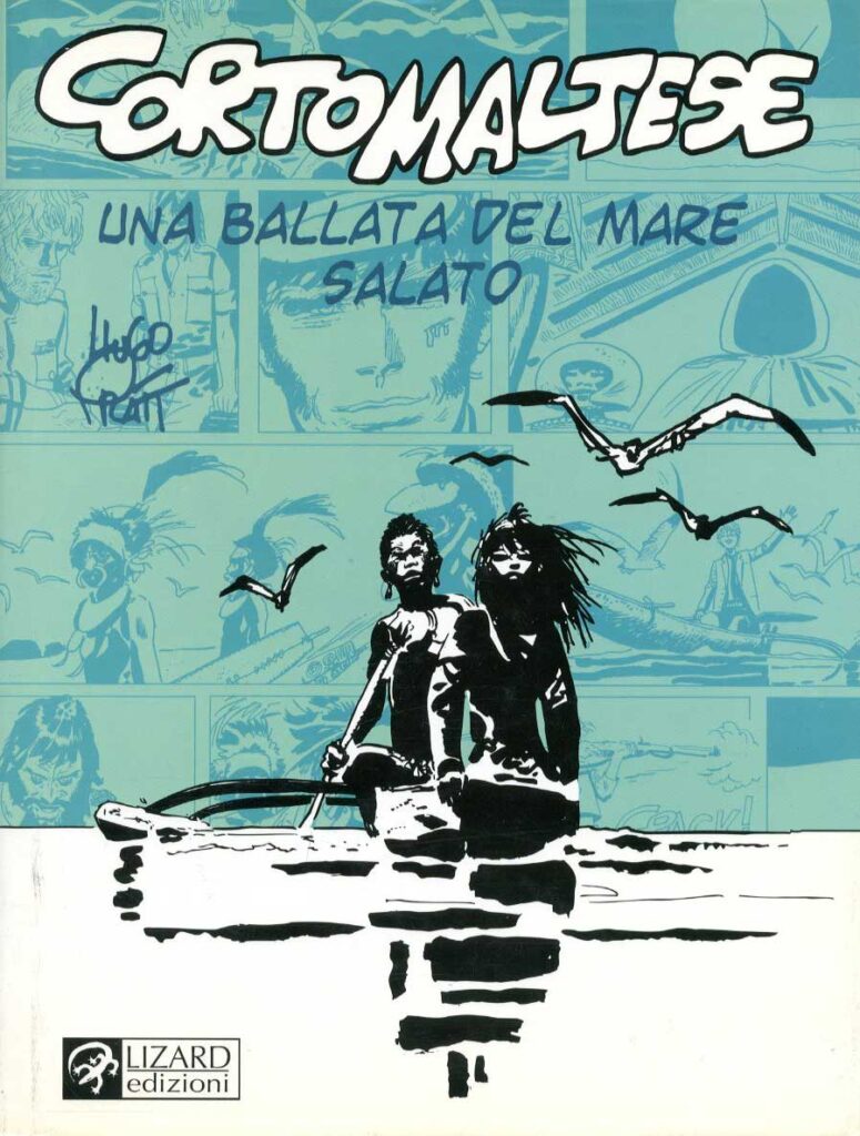 Hugo Pratt crafted his story with a deep connection to literary adventure. The very plot of the book is inspired by Henry De Vere Stacpoole‘s The Blue Lagoon. Whereas in the novel, two cousins marooned on an island and are left to their devices to survive, in The Ballad of the Salty Sea, Cain and Pandora Groovesnore, still cousins, are quickly found by Russian pirate Rasputin and his friend and rival, Corto. Pratt took cues from writers such as Joseph Conrad and Herman Melville. Moreover, he scattered literary citations all over the comic. For example, young Cain compares himself to Robinson Crusoe and often cites Moby Dick. In addition, onboard a German U-boat a copy of Samuel T. Colerdige‘s The Rime of the Ancient Mariner can be found.